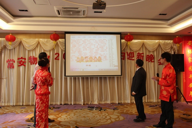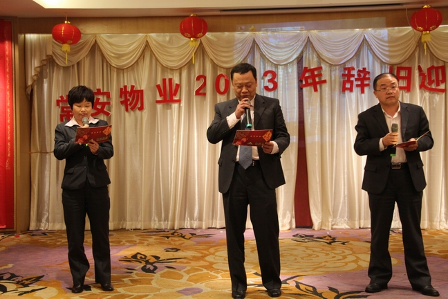 2013年1月25日常安物業(yè)召開了2012年度表彰總結(jié)大會(huì)及2013年辭舊迎新晚會(huì)。參加會(huì)議的主要人員有副總經(jīng)理-黃國(guó)義、副總經(jīng)理-蔡愛(ài)花、董事長(zhǎng)-張武。會(huì)議主要對(duì)公司在2012年度的各項(xiàng)工作進(jìn)行了匯報(bào)與總結(jié),并制定了2013年的發(fā)展戰(zhàn)略。會(huì)議中對(duì)2012年度優(yōu)秀員工及先進(jìn)服務(wù)中心及主任進(jìn)行了表彰,并與各服務(wù)中心簽訂了2013年目標(biāo)管理責(zé)任書。