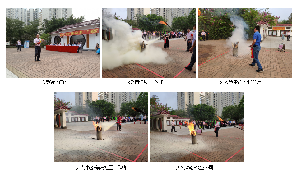 在確認(rèn)現(xiàn)場火情得到控制的情況下,現(xiàn)場指揮組織各應(yīng)急小組到前?;▓@三期廣場集合,前?;▓@物業(yè)服務(wù)中心秩序維護(hù)隊(duì)長為現(xiàn)場所有人員詳細(xì)講解了ABC干粉滅火器的使用方法,隨后組織了約10%的參與演習(xí)人員開啟滅火器操作體驗(yàn)。