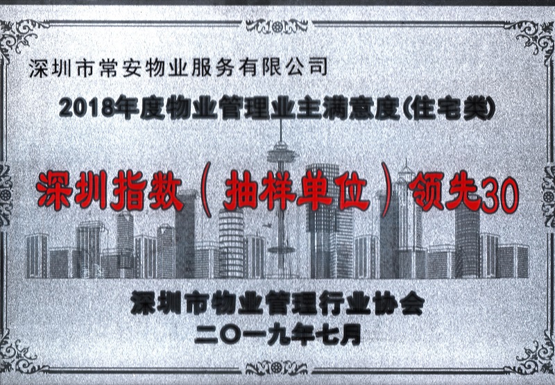 物業(yè)管理業(yè)主滿意度深圳指數(shù)測評工作已結(jié)束。以此次深圳指數(shù)測評所有樣本為主,結(jié)合深圳綜合實(shí)力 50強(qiáng)滿意度測評、優(yōu)秀項(xiàng)目達(dá)標(biāo)驗(yàn)收滿意度測評及自主參與滿意度測評所涉及的樣本進(jìn)行統(tǒng)計(jì),根據(jù)測評結(jié)果,我司榮獲“2018年度物業(yè)管理業(yè)主滿意度(住宅類)深圳指數(shù)(抽樣單位)領(lǐng)先30”的榮譽(yù)稱號。