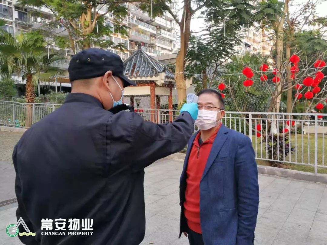 統(tǒng)計(jì)返深人員的信息(包括服務(wù)中心的員工)及外來(lái)流動(dòng)人員情況,做好體溫測(cè)量和記錄。截止2020年1月30日,我司共計(jì)采購(gòu)紅外體溫儀器70余套,對(duì)在管項(xiàng)目業(yè)主/住戶(hù)、外來(lái)人員和值班人員共計(jì)測(cè)量體溫五千余次。確保常安物業(yè)管理區(qū)域業(yè)主及公司員工生命安全”