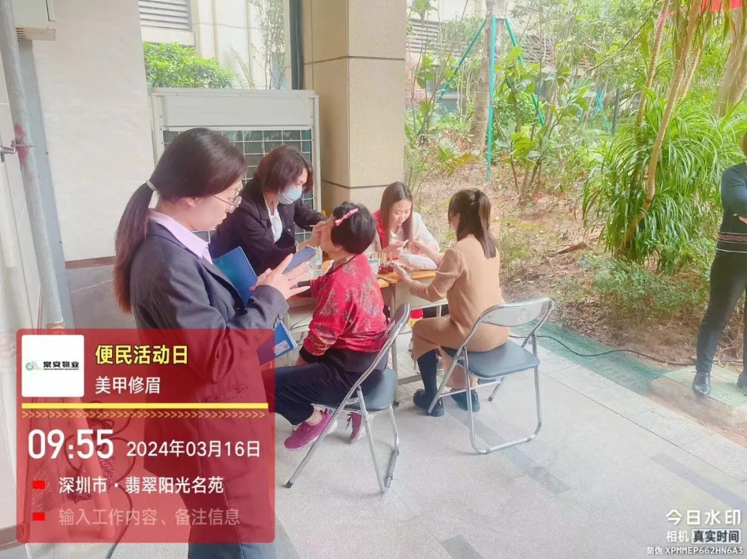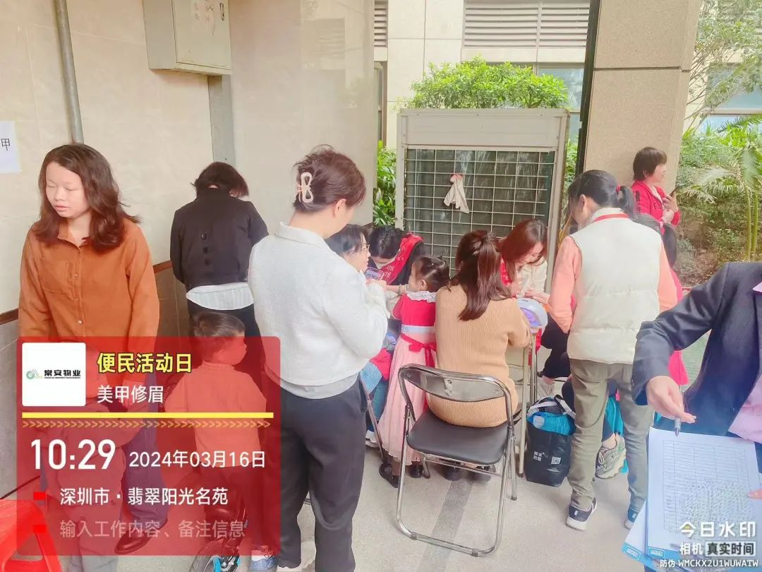 關(guān)注每一個細(xì)節(jié),為您的生活添彩!為方便本小區(qū)業(yè)主和住戶的居家生活,提升業(yè)主滿意度,提倡助人為樂,創(chuàng)建和諧小區(qū)。常安物業(yè)翡翠陽光名苑小區(qū)便民活動,在2024年3月16日(周六)上午09:30-12:30如期舉行:服務(wù)項(xiàng)目包括送水票、清洗服務(wù)、義剪、義診、美甲、修眉,獲得業(yè)主一致好評。